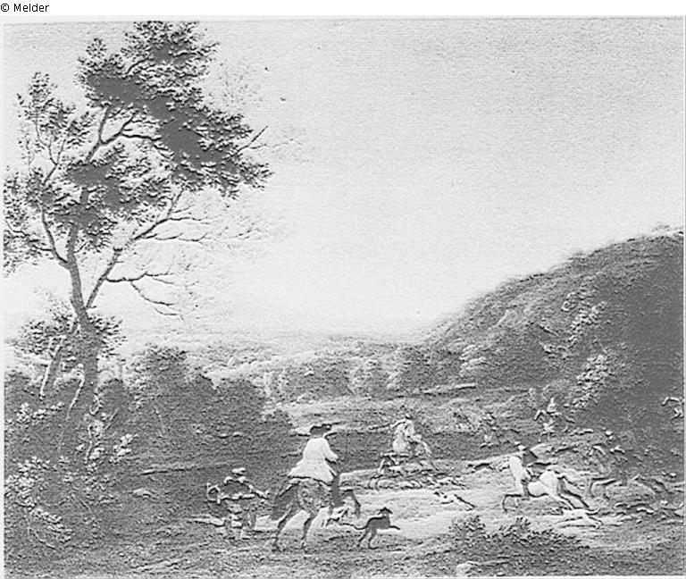Hügellandschaft mit Hirschjagd