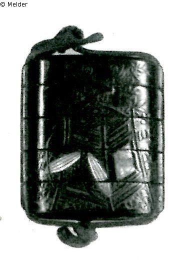 Sammlung Eduard Fuchs, erworben zwischen 1912–1925 und in dessen Besitz bis 1933; 25.10.1933 Beschlagnahmung durch die Gestapo; zwangsweiser Verkauf (Zahlung Reichsfluchtsteuer) 1937 durch seine Tochter Gertraud Fuchs: Versteigerung Auktionshaus Rudolph Lepke Berlin, Katalog 2115 - am 15.10 und am 16.10.1937 wurde diese Kleinplastik unter Nr. 315 versteigert: „INRO: Goldlack, vierteilig, Blumen und Gräser in Goldlack, Email- und Elfenbeinauflageng. Holznetsuke. 7 cm. Japan. Abbildung Tafel 11“.