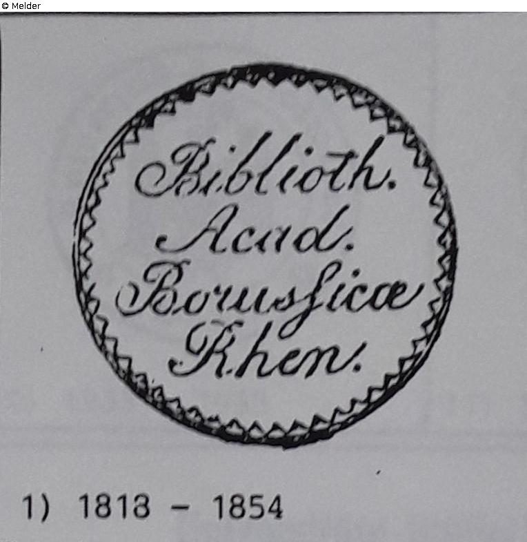 erworben in der Bodmannschen Auktion zu Mainz, UB Bonn Acc. 1823.209; Auslagerung, 1942/1943; nach dem 2. Weltkrieg als fehlend festgestellt