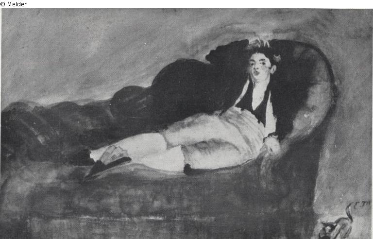 Jeune femme couchée en costume espagnole / Liegende junge Frau in spanischem Kostüm