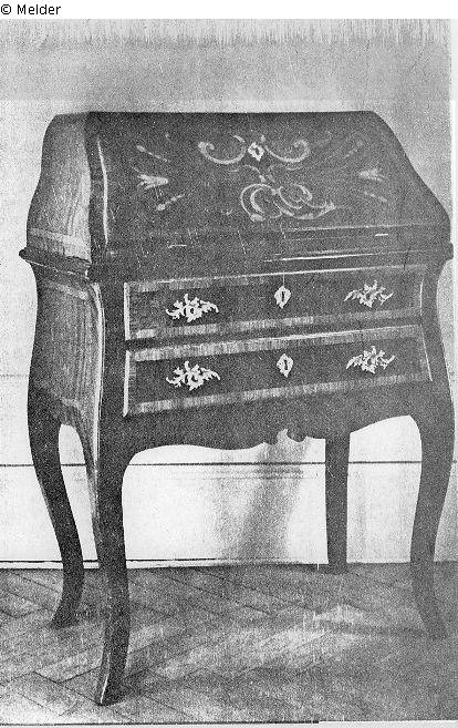 Suchmeldung | Einzelobjekt Kleiner Sekretär Lost Art-ID417280 Vorherige Weiter Hersteller/Künstler:in Unbekannt (Schwedisch) TitelKleiner Sekretär Datierung1701/1800ObjektartMöbelObjektgruppeKunsthandwerk / -gewerbe Höhe 100,00 cm Breite 75,00 cm Tiefe 45,00 cm InventarnummerLager-Nr. 3670Provenienz Einlagerung der Kunstgegenstände 1943 durch Firma Karl Boden Nachf. OHG Spedition, Möbeltransporte; Verlust: "Lager Henel" in Spremberg, 1945. Weiterlesen Weniger anzeigen Literatur / Quelle Dokumente in Besitz von Konrad Heydenreich Weiterlesen Weniger anzeigen Veröffentlicht seit2010 Kontakt Kontaktanfragen richten Sie bitte an das Deutsche Zentrum Kulturgutverluste.