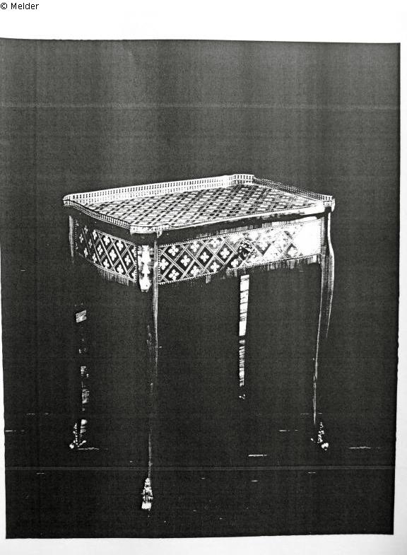 Suchmeldung | Einzelobjekt Kleiner Tisch Lost Art-ID422678 Vorherige Weiter Vergleichsabbildung Vergleichsabbildung Hersteller/Künstler:in Unbekannt TitelKleiner TischObjektartMöbelObjektgruppeKunsthandwerk / -gewerbeMaterial / TechnikHolz (Rosenholz)Beschreibung Epoche Louis XV; Gestempelt von Boudin; Bei den gezeigten Abbildungen handelt es sich um Vergleichsabbildungen Weiterlesen Weniger anzeigen Provenienz Sammlung Edouard Jonas, 1940 Beschlagnahme/Entziehung im Auftrag von Göring durch Staatsmininster Engerer in Bordeaux im September 1940 Weiterlesen Weniger anzeigen Veröffentlicht seit2010 Ansprechpartner:in von Trott zu Solz LammekPositionRechtsanwälte NotarTel+49 (0) 30 59 00 33 0-0E-Mailkanzlei@vontrott-lammek.de