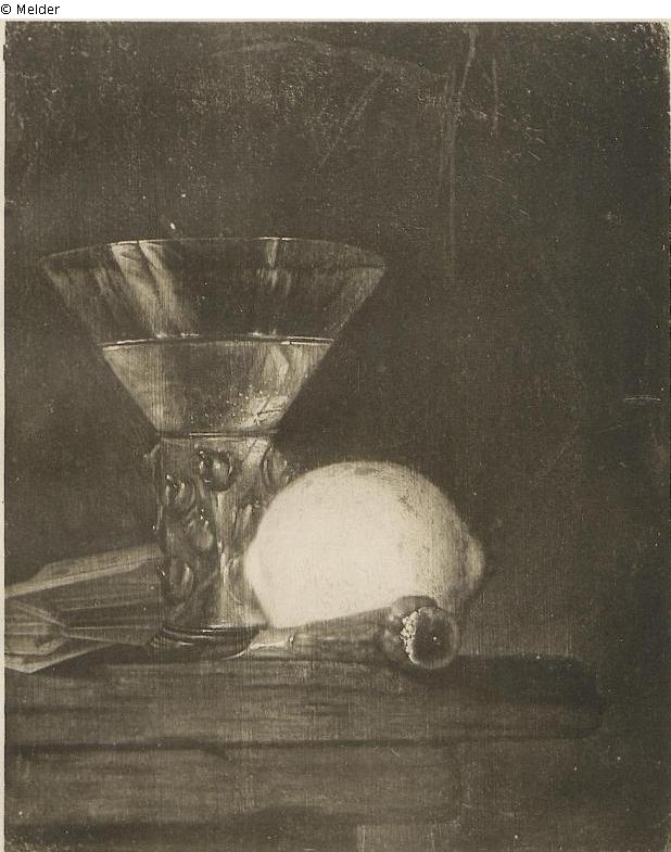 Kleines Stillleben mit Glaspokal und Zitrone