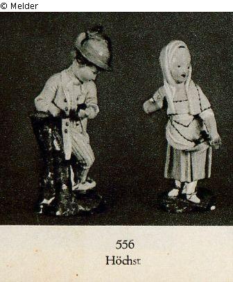 Knabe mit Apfel & Mädchen mit Blumen in der Schürze