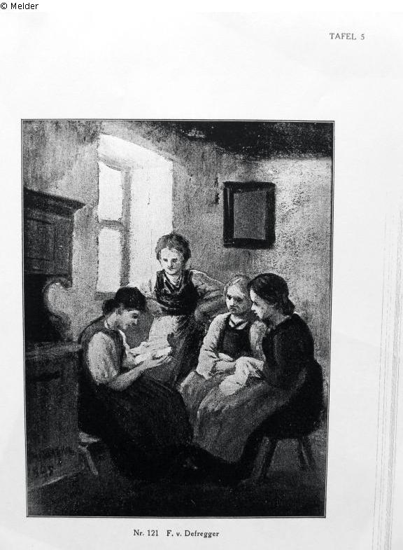 Suchmeldung | Einzelobjekt Ländliches Interieur mit strickenden Mädchen Lost Art-ID319400 Vorherige Weiter Hersteller/Künstler:in Defregger, Franz von Geburt 1835.04.30, Stronach (Tirol) Tod 1921.01.02, München WirkungsortInnsbruck; München TitelLändliches Interieur mit strickenden MädchenObjektartMalereiObjektgruppeMalereiMaterial / TechnikPappe / gemalt Höhe 24,00 cm Breite 19,00 cm Beschreibung Gruppe von vier Bauernmädchen in einer Stubenecke vor einem Fenster. Eine links Sitzende liest aus einem Buch vor. Bezeichnet: Defregger 1895 Weiterlesen Weniger anzeigen Provenienz Versteigerung bei Leo Spik, Berlin 16./17.9. 1935, Nr.121, Abbildung auf Tafel 5; Lempertz Köln, 12.-14.12.1935, Nr. 42 Weiterlesen Weniger anzeigen Veröffentlicht seit2006 Ansprechpartner:in von Trott zu Solz LammekPositionRechtsanwälte NotarTel+49 (0) 30 59 00 33 0-0E-Mailkanzlei@vontrott-lammek.de