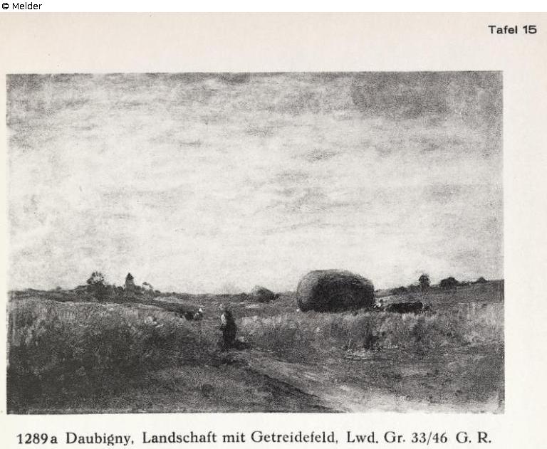 Landschaft mit Getreidefeld; Sign. G.R.
