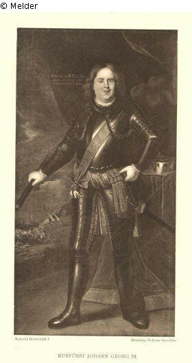 Suchmeldung | Einzelobjekt Lebensgroßes Porträt des Kurfürsten Johann Georg III. Lost Art-ID239780 Vorherige Weiter Hersteller/Künstler:in Unbekannt TitelLebensgroßes Porträt des Kurfürsten Johann Georg III.ObjektartMalereiObjektgruppeMalereiMaterial / TechnikÖl ; Leinwand / gemaltAbmessungenHöhe: 212 cm, mit Rahmen: 234 cm, Breite: 114 cm, mit Rahmen: 137 cm InventarnummerV 165Beschreibung Das lebensgroße Porträt des Kurfürsten Johann Georg III. Geschnitzter und vergoldeter Rahmen aus der Zeit um 1720/1730 Weiterlesen Weniger anzeigen Provenienz Inventar Pretiosen-Saal 1879. Weiterlesen Weniger anzeigen Veröffentlicht seit2001 Kontakt Staatliche Kunstsammlungen Dresden Grünes Gewölbe Taschenberg 2 01067 Dresden Deutschland Tel(0351) 4914 8591E-Mailgg@skd.museumHomepagehttps://www.skd.museum/ Ansprechpartner:in DirektionTel(0351) 4914 8590E-Mailgg@skd.museum