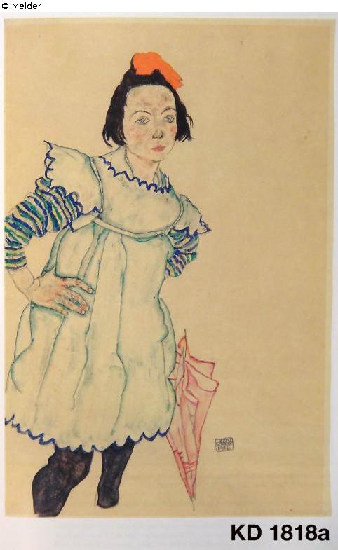 nach Werkverzeichnis Kallir: KD No: 1818a; Titel: Mädchen mit Schirm; Gouache und Bleistift. Signiert und datiert unten rechts. Beschriftet "Serena Lederer" durch andere Hand, verso.