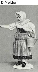 Marktfrau; brauner Rock, mit gelber Schürze, weiße Bluse mit gelbem Mieder, weißes Kopftuch, am Arm einen Korb mit Äpfeln. Modell von Kaendler. Quelle: Rudolph Lepke's Kunst-Auctions-Haus: Antiquitäten, Gemälde: Bestände der Kunsthandlung B., Berlin, Alt-Meissener Porzellan der Sammlung Demiani u. and. Beiträge ; Möbel des 16. bis 18. Jahrhunderts, europäisches und chinesisches Porzellan, Fayencen, Steinzeug, Teppiche, Tapisserien, Bronzen, Silber, Kleinkunst, Inkunabeln u.a. (Katalog Nr. 2106). Versteigerung vom 7.10.1936. Berlin 1936; LAB, A Rep. 243-04 Nr. 3, Versteigerung vom 7./8.10.1936, Versteigerungsantrag Ball.