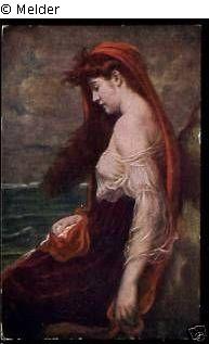 junges Mädchen an einem stürmischen dunklen Abend am Meer; Goldrahmen; signiert