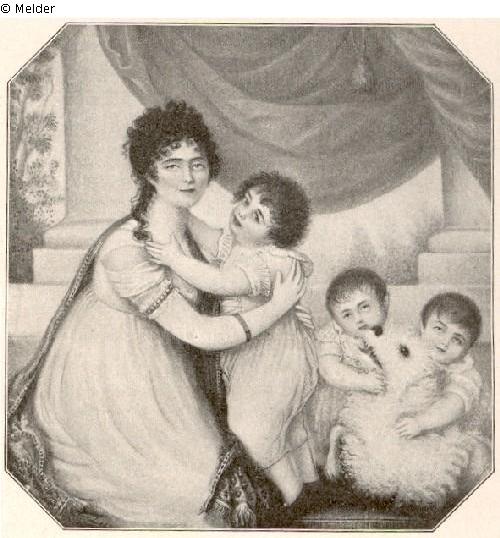 Miniaturbildnis Königin Karoline von Bayern mit dem früh verstorbenen Prinzen Maximilian und den Zwillingsschwestern Elisabeth und Amalie