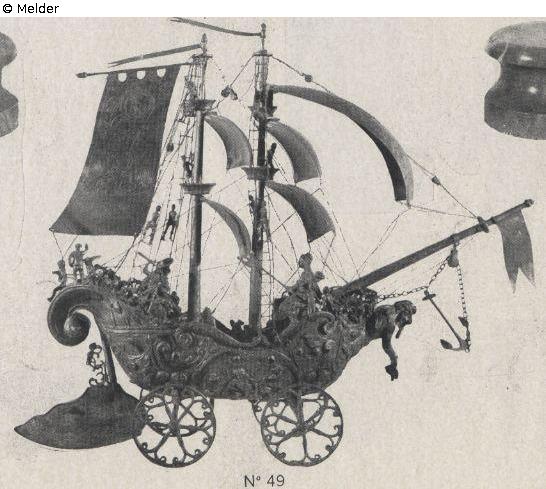 Suchmeldung | Einzelobjekt Nef / Schiff Schiff belebt mit Figuren Lost Art-ID622518 Vorherige Weiter Hersteller/Künstler:in Unbekannt TitelNef / SchiffZusatztitelSchiff belebt mit Figuren Datierung1501/1600ObjektartKunsthandwerk / -gewerbeObjektgruppeKunsthandwerk / -gewerbeMaterial / TechnikMetall (Silber) Gewicht 3450,00 g Inventarnummer49-3232Beschreibung Schiff mit Figuren belebt, Segel gesetzt, auf Rädern montiert, Renaissance-Ornament Weiterlesen Weniger anzeigen Provenienz Sammlung Anna und John Jaffé; versteigert an Louis LEOSPO, 12-13/07/1943, Nr. 49-3232; Verbleib unbekannt Weiterlesen Weniger anzeigen Literatur / Quelle Auktionskatalog Collection John Jaffé ; vente John Jaffé, Nice, Hall du Savoy, 12-13 juillet 1943 (Me J.-J.Terris) Weiterlesen Weniger anzeigen Veröffentlicht seit24.06.2024 Ansprechpartner:in Alain MonteagleE-Mailalainmonteagle@gmail.com Ansprechpartner:in Leelou BellangerE-Mailleelou.bellanger@outlook.fr