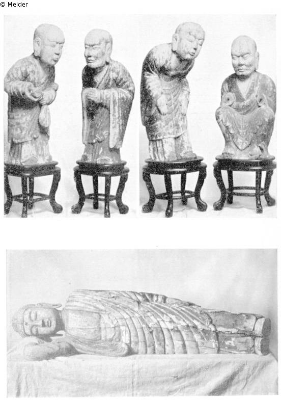 Keleti Művészeti Kiállítás [Oriental Art Exhibition], Magyar Gyűjtők és Művészetkedvelők Egyesülete [Association of Hungarian Collectors and Art Patrons] Iparművészeti Múzeum [Museum of Applied Arts] Budapest, 1929, No. 607, Plate XXVI; Hatvany Bertalanné levele a Szépművészeti Múzeum Igazgatóságának,, Hatvany Józsefné, Hatvany Endre, Hatvany Bertalan, Hatvany Lilly, és Hatvany Antónia nyilasok és németek által elhurcolt javaikról [Letter of Mrs. Bertalan Hatvany to the Directorate of the Museum of Fine Arts about the assets taken by the Nyilas and Nazis of Mrs. József Hatvany, Endre Hatvany, Bertalan Hatvany, Lilly Hatvany, Antónia Hatvany] March 21, 1947, Magyar Nemzeti Levéltár [National Archives of Hungary], 369/1947, No. 3 (Sung or Ming Dynasty, polychrom, 3 - 4th century, six pieces, „guilt Buddha lying"); Bertalan Hatvany levele az elveszett főbb műtárgyainak listájával a Veszélyeztetett Magángyűjtemények Miniszteri Bizottságának [Letter of Bertalan Hatvany with a list of the more important lost works of art to the Ministerial Commission of Endangered Art Collections] July 9, 1947. Magyar Nemzeti Levéltár [National Archives of Hungary] XIX-J-13-332-1947, Nos. 19-24.; List of Art Treasures Removed by Germans from Hungary and not been returned by March, 1948. Magyar Nemzeti Levéltár [National Archives of Hungary] XXIX-L-2-r 51, No. 24 - 29 (13 - 15th century, red, white, green, the Buddha - figure gilded); Mravik, László, The "Sacco Di Budapest" and Depredation of Hungary, 1938-1949: Works of Art Missing from Hungary as a Result of the Second World War : Looted, Smuggled, Captured, Lost and Destroyed Art Works, Books and Archival Documents : Preliminary and Provisional Catalog, 1998, Hungarian National Gallery, Budapest, p. 213, No. 15556-15563.; Fajcsák, Györgyi, Bertalan Hatvany, an Unknown Connoisseur of Oriental Art In: Ars Decorativa 23, Budapest, 2004, 55-71.