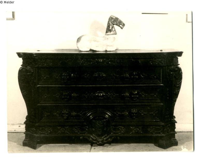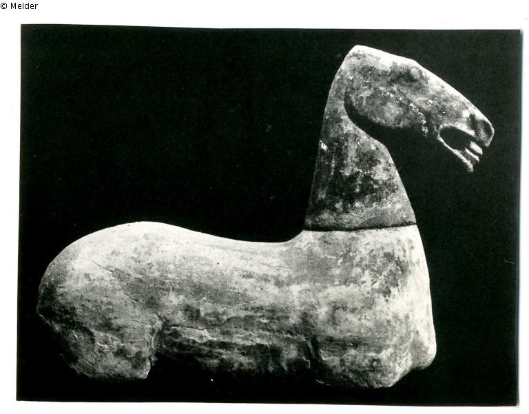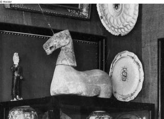 Sammlung Eduard Fuchs erworben zwischen 1912-1922 und in dessen Besitz dort bis 1933; 25.10.1933 Beschlagnahmung durch die Gestapo; zwangsweiser Verkauf (Zahlung Reichsfluchtsteuer) durch seine Tochter Gertraud Fuchs: Versteigerung Auktionshaus Rudolph Lepke Berlin, Katalog 2115, S. 29 - am 15.10 und am 16.10.1937 wurde diese Skulptur unter Nr. 438 versteigert: “PFERDETORSO, nur Leib und Kopf, weiß-lichgrauer Scherben mit Spuren alter Bemalung. Länge 48 cm, Höhe 43 cm. Wei“. Das Objekt mit dem Schätzpreis 100,- RM fand jedoch keinen Käufer und wurde nochmals bei Lepke (Katalog 2124, S. 29) eingereicht. Vom 22. – 24. Juni 1938 wurde der Pferdetorso als Los 608 für 40,- RM (Schätzpreis: 100,- RM) nach dem annotierten Katalog der Kunstbibliothek von Den Haag von einem unbekannten Kunsthändler/Sammler (Mentiro?) ersteigert; Verbleib unbekannt