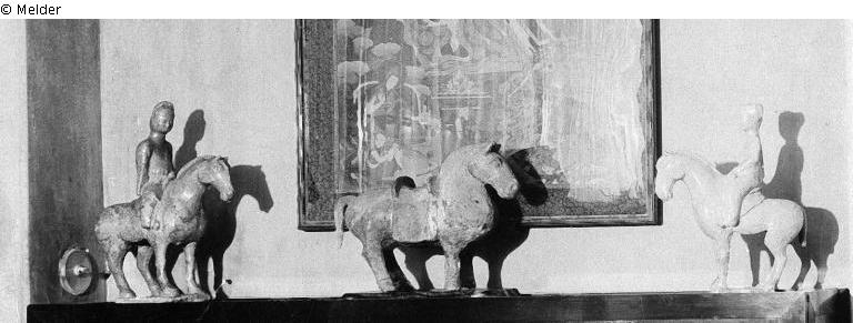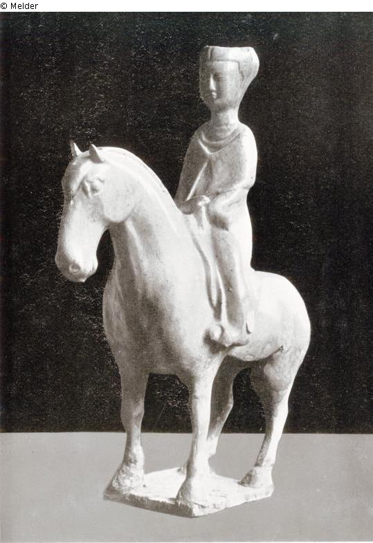 Sammlung Eduard Fuchs erworben zwischen 1912-1922 und in dessen Besitz dort bis 1933; 25.10.1933 Beschlagnahmung durch die Gestapo; zwangsweiser Verkauf (Zahlung Reichsfluchtsteuer) durch seine Tochter Gertraud Fuchs: Versteigerung Auktionshaus Rudolph Lepke Berlin, Katalog 2115, S. 8 - am 15.10 und am 16.10.1937 wurde diese Skulptur unter Nr. 50 versteigert, dort allerdings als Reiter und nicht als Reiterin wie bei Fuchs bezeichnet: „TONFIGUR: Reiter zu Pferde; gelblich glasiert. Höhe 32 cm. Tang“. Laut annotiertem Lepke-Katalog (Kunsthistorische Bibliothek, Den Haag) von einem bisher unbekannten Händler oder Sammler Zeckendorf ersteigert für 24,- RM (Kein Schätzpreis). Die Protokollabschrift der Versteigerung 2115 bei der Reichskammer für Bildende Künste vermerkt maschinenschriftlich „Zeckendorf“ und bestätigt den Preis von 24,- RM (Landesarchiv Berlin, A Rep. 243-04 Reichskammer für bildende Künste – Landesleitung Berlin); Verbleib unbekannt