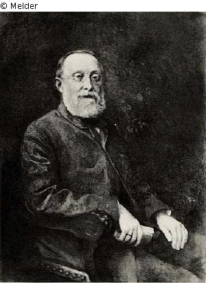 Der Gelehrte, Rudolf Virchow in einem dunklen Rock, sitzt im Lehnstuhl nnach recghts gewandt und blickt auf den Beschauer, die rechte Hand hält einie Papierrolle. Signiert. Goldener Rahmen.
