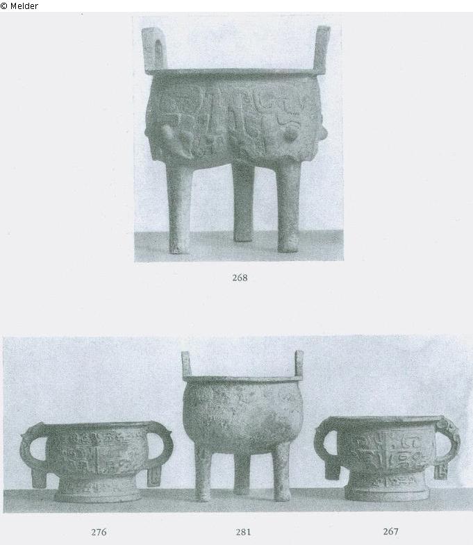 Mit zwei Tierkopfhenkeln. T`ao-t`ieh-Masken und Drachen in Relief. Krustig-grüne und Erdpatina. Chou.