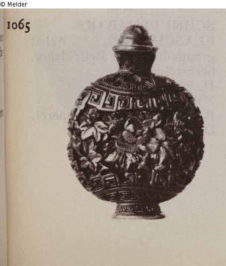 Suchmeldung | Einzelobjekt Schnupftabaksfläschchen Lost Art-ID599091 Vorherige Weiter Hersteller/Künstler:in Unbekannt (Chinesisch) TitelSchnupftabaksfläschchen Datierung1701/1800ObjektartGefäßObjektgruppeKunsthandwerk / -gewerbeMaterial / TechnikRotlack / geschnitten Höhe 6,60 cm Inventarnummer1065 (Ausstellung 1929)Beschreibung Päonienblüten. Rotlack, geschnitten. Weiterlesen Weniger anzeigen Provenienz Sammlung Charlotte Klemperer, Dresden - 1929 -; Verbleib unbekannt; Entzug durch nationalsozialistische Verfolgung nicht ausgeschlossen Weiterlesen Weniger anzeigen Literatur / Quelle Gesellschaft für Ostasiatische Kunst, Akademie der Künste (Hrsg.): Ausstellung chinesischer Kunst. 12. Januar bis 2. April 1929. Berlin 1929. Weiterlesen Weniger anzeigen Veröffentlicht seit04.04.2022 Kontakt Kontaktanfragen richten Sie bitte an das Deutsche Zentrum Kulturgutverluste.