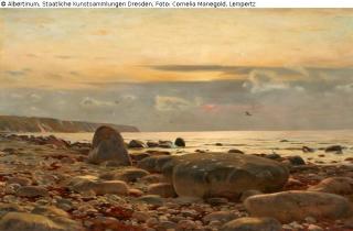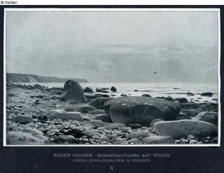 Eugène Dücker (1841–1916): Sonnenaufgang auf Rügen [Sonnenaufgang am Strande von Rügen], 1887. Historische Aufnahme [aus: E. W. Bredt, Deutsche Lande. Deutsche Maler. Leipzig 1909, Tafel X (Fotograf R. Tamme)], Scan: Staatliche Kunstsammlungen Dresden (SKD)