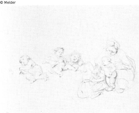 Studienblatt einer Frau und fünf Kindern
