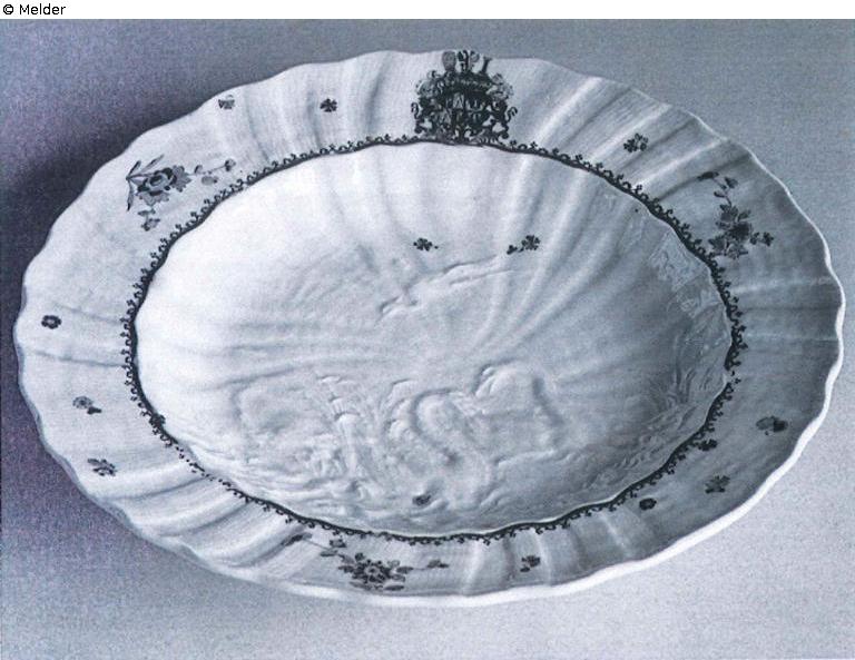 flacher Teller, Dresdener Kriegsverlust aus dem Besitz des Brühlschen Schwanenservices.