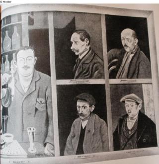 Polyptychon bestehend aus neun Einzelbildern; Einzelbild Vater, ehemaliger Provinzgastwirt. Hat drei Söhne im Krieg verloren. Wächter bei der Wach- und Schließgesellschaft, jetzt Zeitungshändler