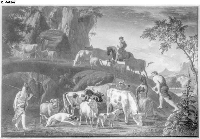 Viehherde an einer Brücke