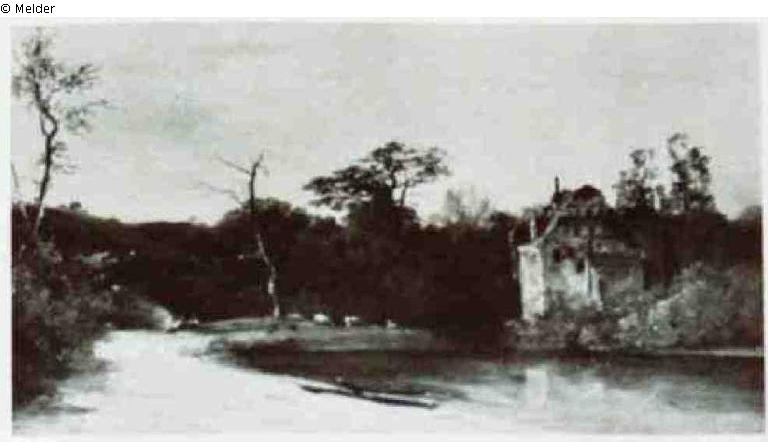 Waldlandschaft mit Schloß am Wasser / Haus am See