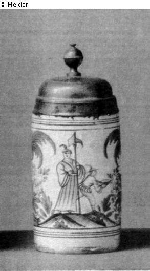 Suchmeldung | Einzelobjekt Walzenkrug Lost Art-ID240020 Vorherige Weiter TitelWalzenkrug Datierung1750 (um) Zeitraum1500-1900ObjektartGefäßObjektgruppeKunsthandwerk / -gewerbeMaterial / TechnikKeramik ; Glasur (Fayence) Höhe 25,00 cm Beschreibung fünffarbig,- Darstellung eines Chinesen mit seinem Diener zwischen Blütenstauden und Palmen,- Zinndeckel,- Erfurt, um 1750. Weiterlesen Weniger anzeigen Veröffentlicht seit2001 Kontakt Kontaktanfragen richten Sie bitte an das Deutsche Zentrum Kulturgutverluste.