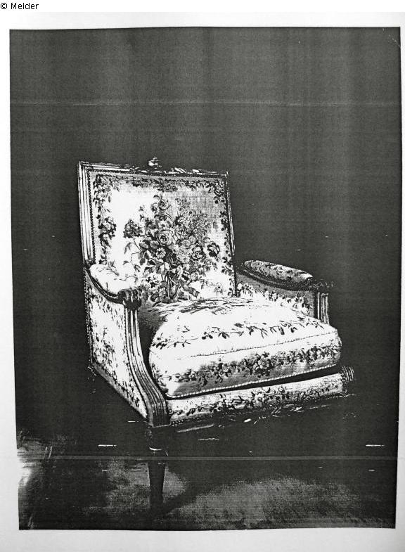 Epoche Louis XVI; (gepolsterte Sitzmöbel), versehen mit feinen Blumenbezugsstoffen; Bei der gezeigten Abbildung handelt es sich um eine Vergleichsabbildung