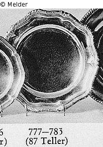 Suchmeldung | Einzelobjekt Zwölf Speiseteller Lost Art-ID452832 Vorherige Weiter Hersteller/Künstler:in Unbekannt TitelZwölf SpeisetellerObjektartKunsthandwerk / -gewerbeObjektgruppeKunsthandwerk / -gewerbeMaterial / TechnikMetall (Silber) Durchmesser 26,50 cm Beschreibung Mit glattem an der Kante reliefiertem Rand. An den Ausbuchtungen Weinblätter und Trauben, dazwischen Bänder. Gewicht je 612-637 gr. Weiterlesen Weniger anzeigen Provenienz Auktion Ottmar Strauss bei Helbing Frankfurt (Main), Nr. 44, 11. und 12. Dezember 1934, Lot 778, Abbildung Tafel 23 Weiterlesen Weniger anzeigen Veröffentlicht seit29.03.2012 Ansprechpartner:in von Trott zu Solz LammekPositionRechtsanwälte • NotarTel+49 (0) 30 59 00 33 0-0E-Mailkanzlei@vontrott-lammek.de
