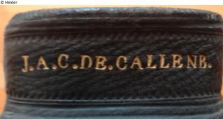 J. A. C. DE CALLENBERG (Johann Alexander Reichsgraf von Callenberg 12.3.1697 - 13.2.1776)goldene Schrift, drei Zeilen mit Jahreszahl