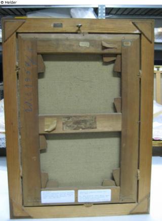 on verso, frame, upper left, inscribed in pencil several times: “24231”; upper centre, black label: “SEIT 1854 F.G. CONZEN RAHMENFABRIK DÜSSELDORF“;