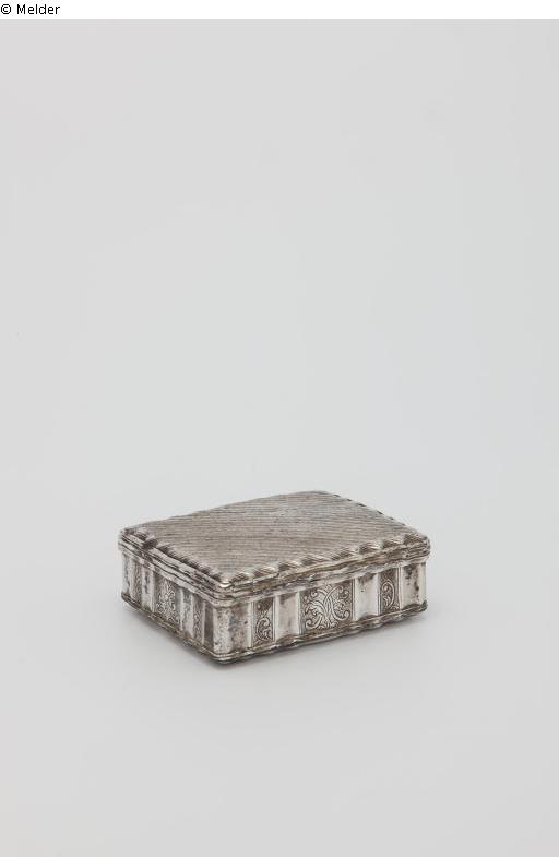 Dose mit Scharnierdeckel - rechteckig, Dosenwandung gewellt mit ziselierten Ornamenten