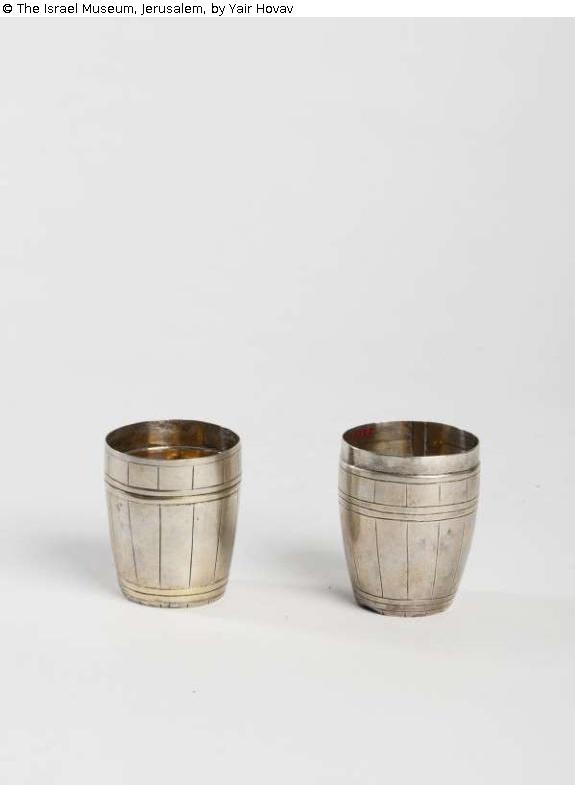 Found-Object Report | Object report Double cup for circumcision ceremony Lost Art-ID573547 Previous Next Link to item in IMJ siteLink to the main site TitleDouble cup for circumcision ceremonyPlace of manufactureAugsburg, Germany Dating1701/1800Object typeRitual objects and equipmentGroup of reported objectsRitual objects and equipmentMaterial / TechniqueSliver, repousse, engraved, and partly gilt Height 10.50 cm Diameter 4.50 cm Inventory numberB53.06.4545;133/102Description Object Name: Double cup for circumcisionSubject: Goblets and various cupsSubject: Circumcision (Brit Milah) Read more Read less HoldingJudaicaProvenance Received through JRSO (Jewish Restitution Successor Organization)Wiesbaden collecting point number: Wie 6071/2 2259 Read more Read less Published since10.01.2018 Contact Israel Museum POB 71117 9171002 Jerusalem Israel Phone972-2-6708811Fax972-2-5631833E-Mailinfo@imj.org.il Contact Bareket MannPositionRegistrarE-Mailbareket@imj.org.il