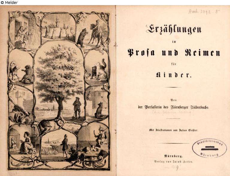 Found-Object Report | Object report Erzählungen in Prosa und Reimen für Kinder. Mit Illustrationen von Julius Geißler Lost Art-ID630902 Previous Next Author Herding, Johanna Publisher Jacob Zeiser TitleErzählungen in Prosa und Reimen für Kinder. Mit Illustrationen von Julius GeißlerPlace of releaseNürnberg Date of publication1869Object typeBookGroup of reported objectsLibrary objectsSignatureStadtbibliothek Nürnberg Amb. 3092.8°Description 8° Read more Read less Provenance Purchased in 1944 by OFP Nürnberg. From the library of Eugen and Paula Kirschbaum, Nuremberg and Utting am Ammersee. Read more Read less Published since08.09.2025 Contact Stadtbibliothek im Bildungscampus Nürnberg Gewerbemuseumsplatz 4 90403 Nürnberg Germany Postfach Postfach 90317 Nürnberg Germany Phone+49 (0) 911 231 7565Fax+49 (0) 911 231 5476Homepagehttp://www.stadtbibliothek.nuernberg.de Contact Dr. Christine SauerPositionLeiterin der Historisch-Wissenschaftlichen StadtbibliothekPhone+49 (0) 911 231 2832E-MailChristine.Sauer@stadt.nuernberg.de Contact Dr. Dominik Radlmaier PositionStadtarchiv Nürnberg / ProvenienzforschungPhone+49 (0) 911 231 27 70 Contact Leibl RosenbergPositionSachgebiet Handschriften und Alte Drucke der Sammlung IKGPhone+49 (0) 911 231 2721E-MailLeibl.Rosenberg@stadt.nuernberg.de