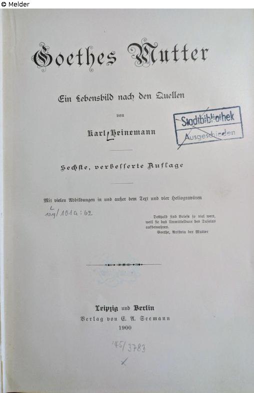Goethes Mutter. Ein Lebensbild nach den Quellen
