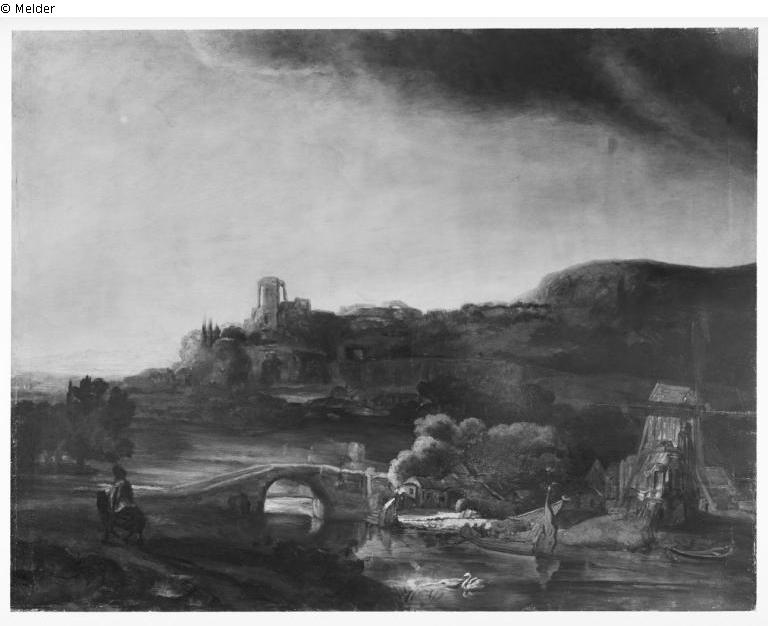 Not signed. Back: wooden panel parquetted top right of the first strut in blue: "20035" (Munich number), centered in red "W 13", below in red and crossed out "IVXY" besite that "IVXX", bottom left label BStGS "Inv. Nr. 12018", above "PR"(Photo Roth), right besite in red "13" or "/3", on the frame top left in blue and in blue crossed out: "40576", lower right corner: "UX R9/6 u"(location Meiserstr.), left a white sticker on it handwritten in black "B II 43/l "(location AP)