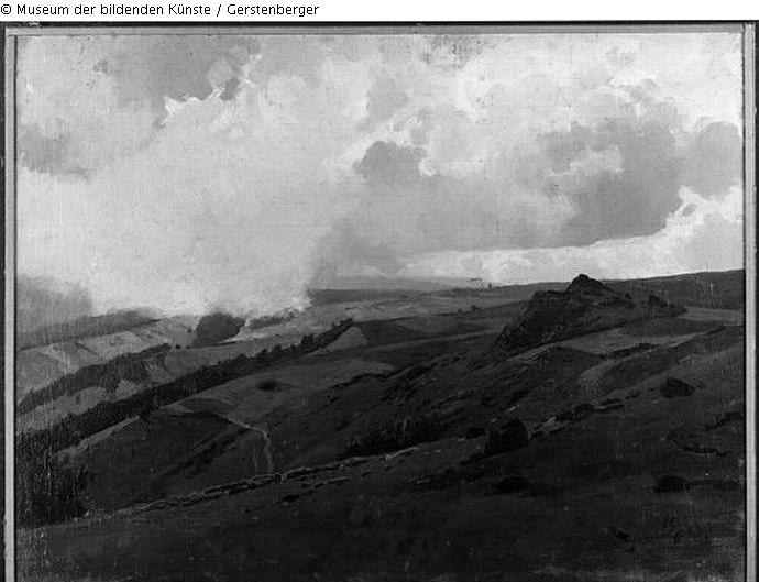 Datiert r. u.: "26/6 83, 726"; Rückseitenbefund: auf der Leinwand o. r.: "WKV 66 ..." und überklebte Zahlen "62" (oder "82"), o. l.: "R Schuster Kupferberg . Erzgd (sic) Sign 26/83", r. u. Museumsstempel und Aufkleber