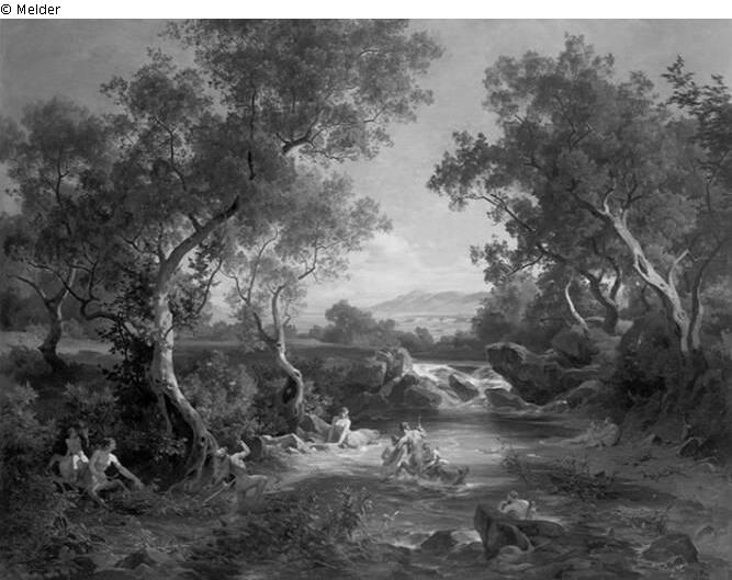 Found-Object Report | Object report Landscape with bathing centaurs Lost Art-ID220675 Previous Next Artist / Creator Preller, Friedrich (the younger) Birth 1838.09.01, Weimar Death 1901.10.21, Dresden-Blasewitz Place of activityRom; Dresden TitleLandscape with bathing centaurs Dating1873Object typePaintingGroup of reported objectsPaintingMaterial / TechniqueOil ; Canvas / painted Height 94.00 cm Width 122.00 cm Inventory numbermü8800Description Signatur: 18 FP 73/.Weimar; Fluß von hinten nach vorn über Felsblöcke, rechts und links Bäume. Die Kentauren im Wasser und am Ufer. Im Hintergrund Berge. Read more Read less Holding Kulturgüter aus dem ehemaligen ReichsvermögenProvenance Access in February 1943 Read more Read less Published since2001 Contact Kunstverwaltung des Bundes Herbert-Bayer-Straße 5 13086 Berlin Germany E-Mailprovenienzforschung@kvdb.bund.deHomepagehttp://www.kunstverwaltung.bund.de