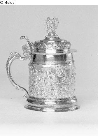 Found-Object Report | Object report Lidded tankard with relief Lost Art-ID482192 Previous Next Artist / Creator Kraer, Jakob Birth 1601, Nürnberg Death 1669, Nürnberg Place of activityNürnberg TitleLidded tankard with relief Dating1670 (um)Object typeCrafts and other folk artsGroup of reported objectsCrafts and other folk artsMaterial / TechniqueMetal (Silver) ; Metal (Gold) / forged Height 21.00 cm Diameter 9.70 cm Inventory numberPI 0340Description see: Paul Graupe (Berlin), Auction 144 (No. 305) Read more Read less Provenance Purchase Paul Graupe auctions (Berlin) 1935 Read more Read less Published since24.02.2014 Contact Museen der Stadt Nürnberg Direktion Hirschelgasse 9-11 90403 Nürnberg Germany E-Mailmuseen@stadt.nuernberg.de Contact Stadtarchiv NürnbergPositionProvenienzforschungPhone0049 (0)911 231-2770E-Mailstadtarchiv@stadt.nuernberg.de