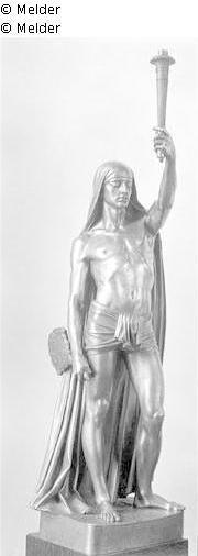 Found-Object Report | Object report Male torchbearer Lost Art-ID219060 Previous Next Artist / Creator Toussaint, Armand Birth 1806.04.07, Paris Death 1862.05.24, Paris Place of activityParis; Marseille; Angers TitleMale torchbearer Dating1850Object typeSculptureGroup of reported objectsSculptureMaterial / TechniqueMetal (Bronze) / cast Height 112.00 cm Inventory numbermü12173Description At the base: A. Toussaint 1850; man with a loincloth, in the left the torch, in the right a peacock fan. Above the head down to the feet a cloth. Read more Read less Holding Kulturgüter aus dem ehemaligen ReichsvermögenPublished since2001 Contact Kunstverwaltung des Bundes Herbert-Bayer-Straße 5 13086 Berlin Germany E-Mailprovenienzforschung@kvdb.bund.deHomepagehttp://www.kunstverwaltung.bund.de