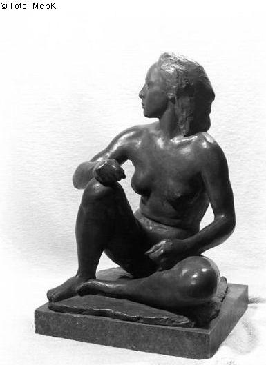 Bronzefigur auf Muschelkalksockel; bezeichnet auf der Plinthe linke Seite links: "Sch. / 1937"; an der Plinthe Rückseite Mitte Gießerstempel: "H.NOACK / BERLIN"; Maße der Figur: 40,3 x 27,2 x 26,6 cm; Maße des Sockels: 4,2 x 28,0 x 26,3 cm