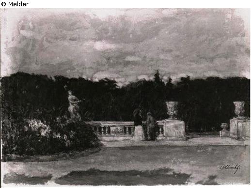Found-Object Report | Object report Park terrace with flower bed and two persons / Schön Lost Art-ID574827 Previous Next Artist / Creator Albrecht, Carl (1862) Birth 1862.04.02, Hamburg Death 1926.09.26, Königsberg TitlePark terrace with flower bed and two persons / SchönObject typePaintingGroup of reported objectsPaintingMaterial / TechniqueCardboard / painted ; pastel Height 28.00 cm Width 38.50 cm Inventory numberMü. 11214; R3395; 80006566Description On the left flower bed with sculpture, on the railing two ladies, one with umbrella. Entrance to a staircase with urn vases on the right. Read more Read less Published since29.01.2018 Contact Bundesamt für Auswärtige Angelegenheiten Kirchhofstraße 1-2 14776 Brandenburg Germany E-MailI-AU-RL@bfaa.bund.de