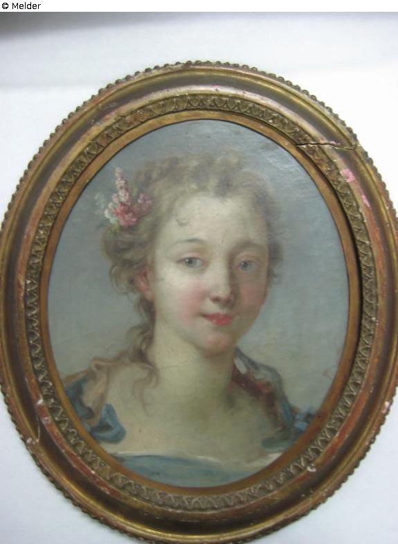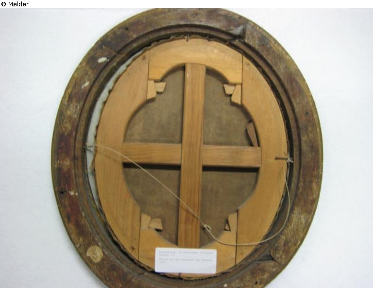 stretcher, lower centre, typewritten label: “Französisch, 18. Jahrhundert (François Boucher?) Zettel auf der Rückseite des Rahmens: ‘cor’”; in black “KVdB 61289”