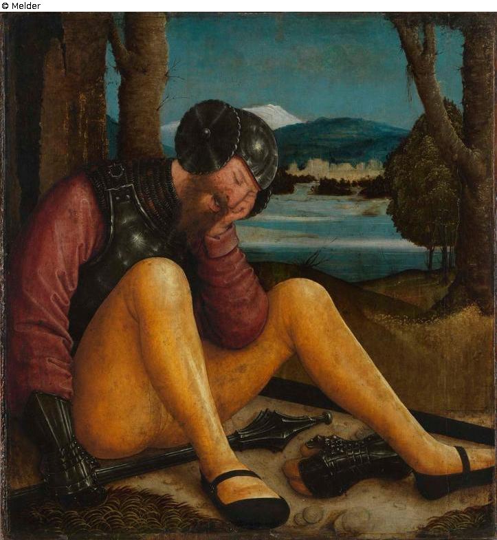 Sleeping tomb guard with mace and sword