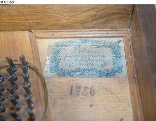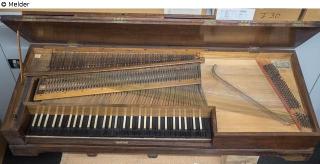 Single Action, F1 to f3, two voices, right hand voices. No music stand. Frame with four turned, fluted pointed feet, turned into foot blocks and the underbody. Two knee levers. Matted surface.