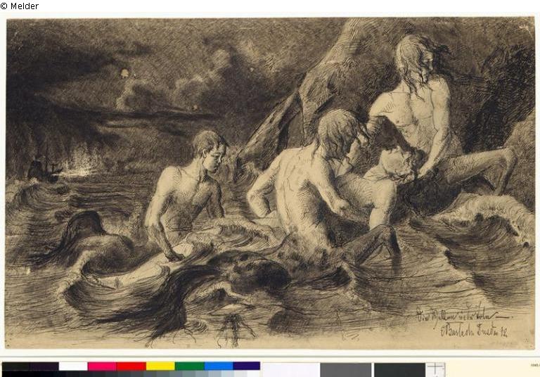 Inscribed below right: "EBarlach Dresden 92"; caption: "Die Welle und der Tote" (The wave and the dead)