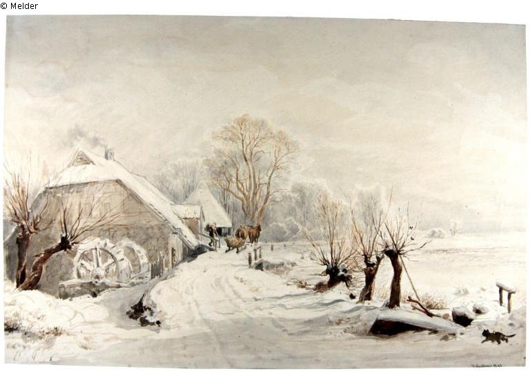 Found-Object Report | Object report Winter landscape with mill and horse-drawn sleigh Lost Art-ID599821 Previous Next Artist / Creator Kauffmann, Hermann (der Ältere) Birth 1808.11.07, Hamburg Death 1889.05.24, Hamburg TitleWinter landscape with mill and horse-drawn sleigh Dating1845Object typeWatercolourGroup of reported objectsGraphicMaterial / TechniqueWatercolour ; Paper ; Pencil / watercoloured Height 34.50 cm Width 52.10 cm Inventory numberC 1944-97Description Below right: signature "H Kauffmann 1845" Read more Read less Holding Erwerbungen für das sogenannte Führermuseum in LinzProvenance C. G. Boerner, Leipzig; 1944 acquired for the "Sonderauftrag Linz". Read more Read less Published since20.05.2022 Contact Staatliche Kunstsammlungen Dresden Kupferstich-Kabinett Taschenberg 2 01067 Dresden Germany Phone(0351) 4914 3210E-Mailkk@skd.museumHomepagehttps://www.skd.museum Contact DirektionPhone(0351) 4914 3210E-Mailkk@skd.museum
