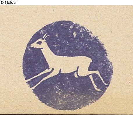 verso unknown round stamp in blue approx. 20 x 20 mm, with a deer